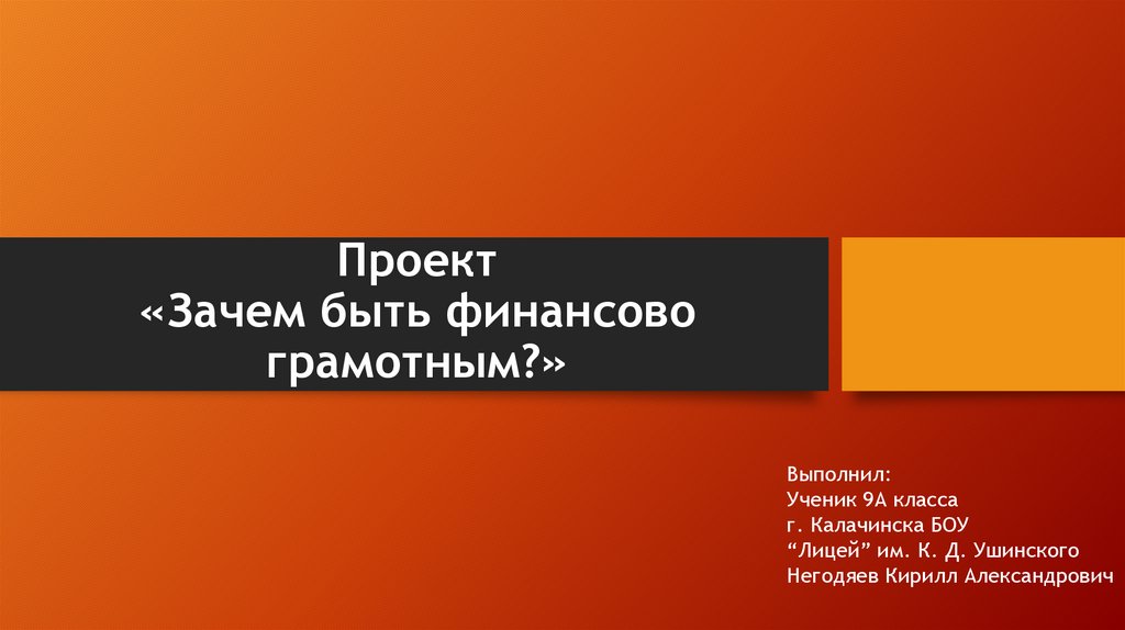 Актуальность проектаЗаключается в проблеме финансовой грамотности современного