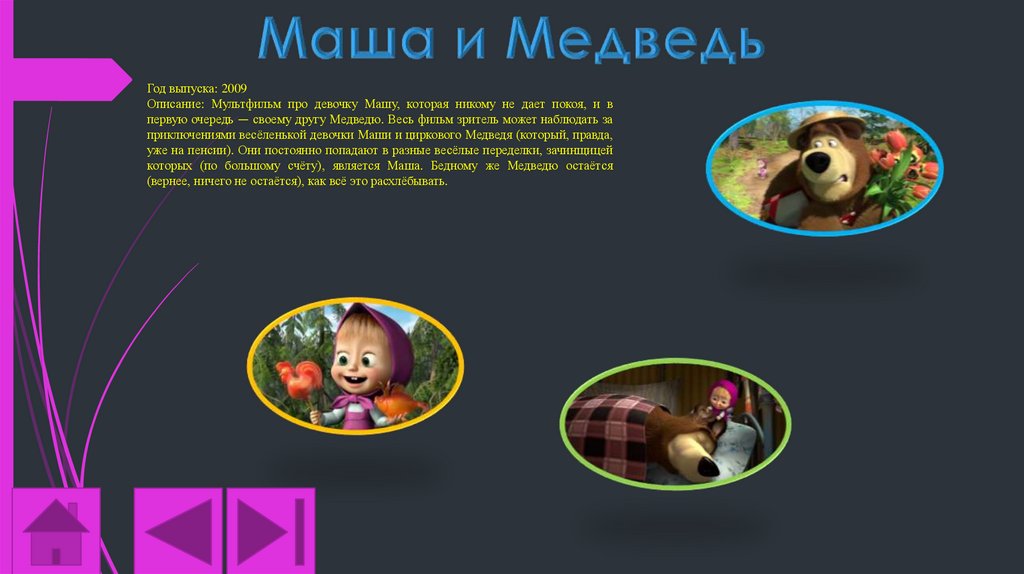 Год выпуска: 2009Описание: Мультфильм про девочку Машу, которая никому не дает покоя, и в
