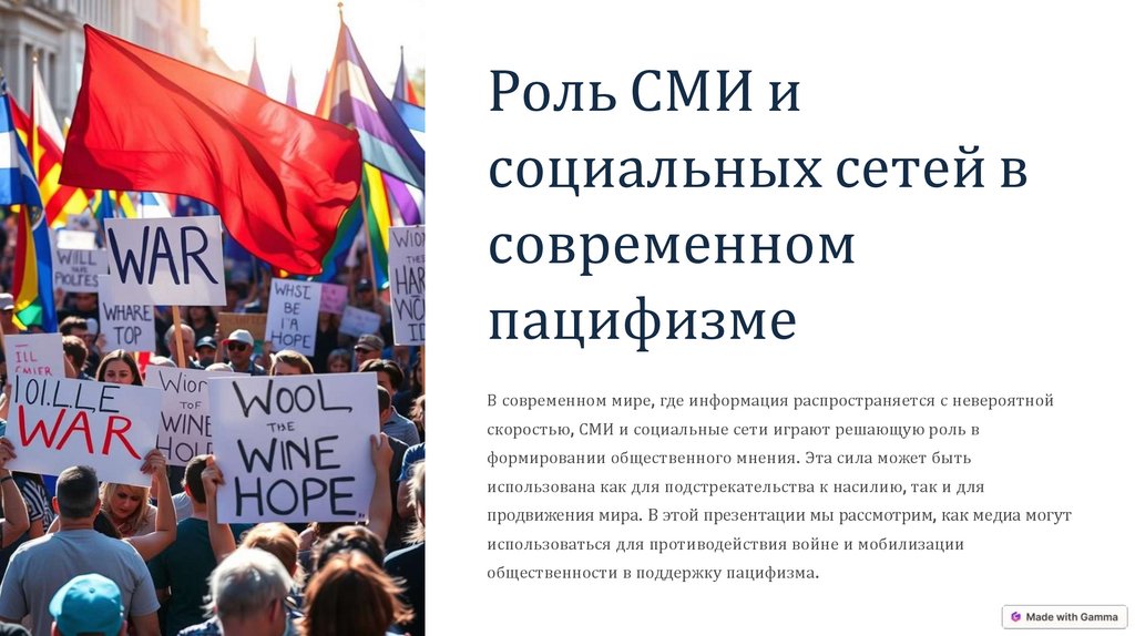 продвижения мира. В этой презентации мы рассмотрим, как медиа могут