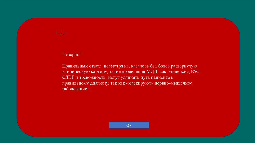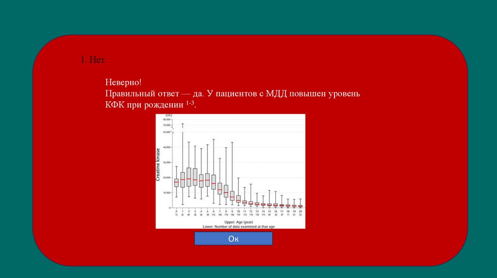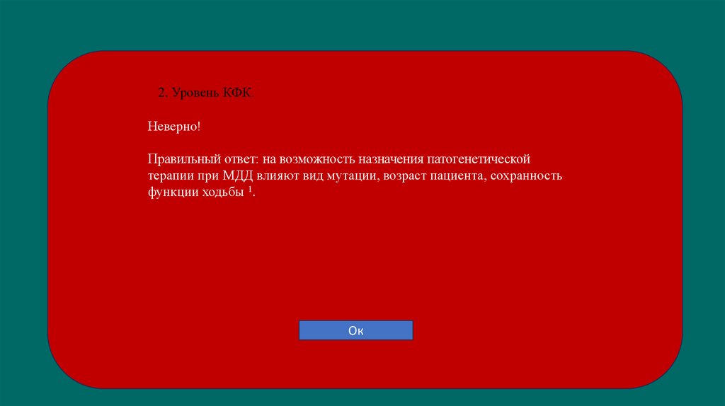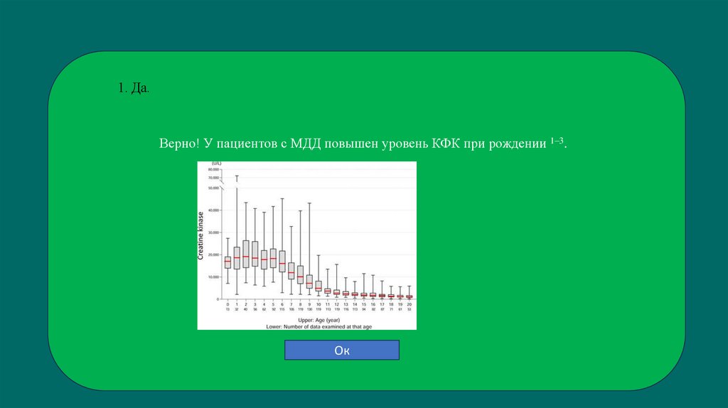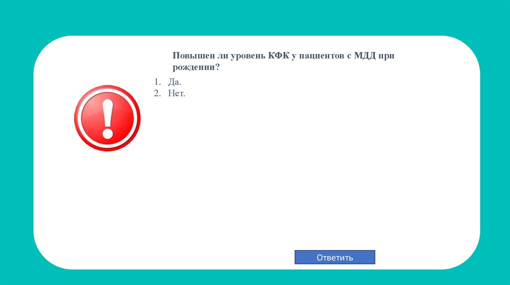 Верно! У пациентов с МДД повышен уровень КФК при рождении 1–3.