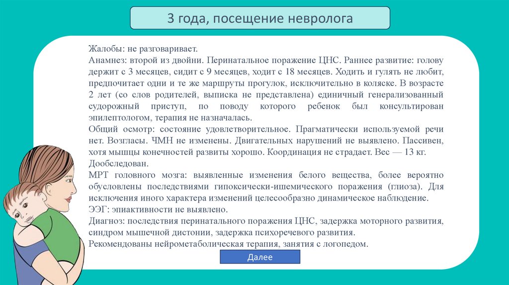 3 года, посещение неврологаЖалобы: не разговаривает.