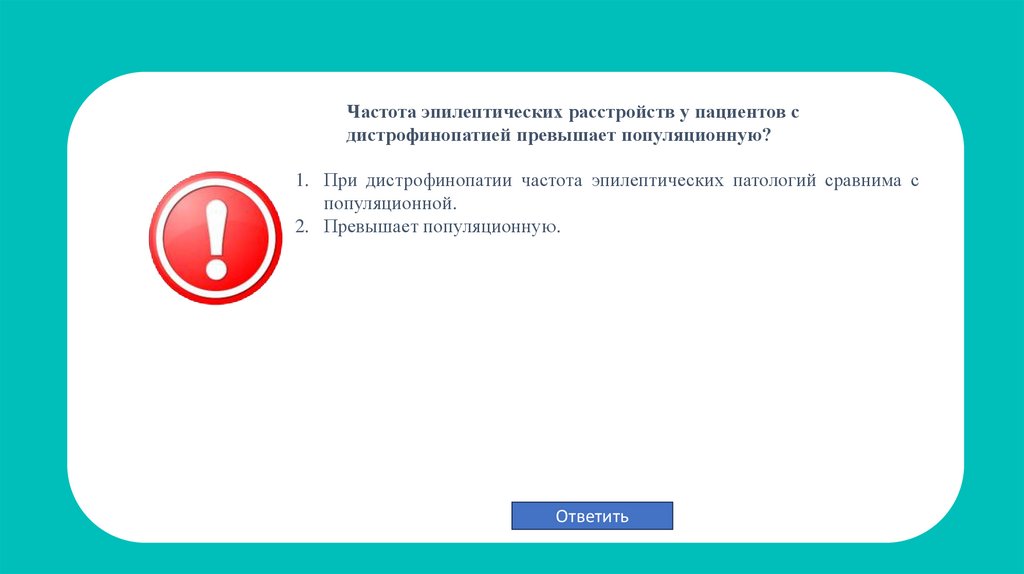 Частота эпилептических расстройств у пациентов сдистрофинопатией превышает популяционную?