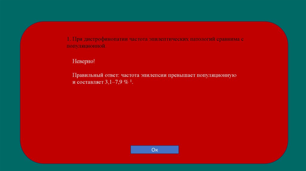 1. При дистрофинопатии частота эпилептических патологий сравнима с