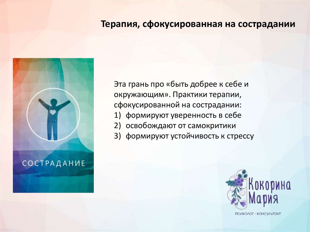 Терапия, сфокусированная на состраданииЭта грань про «быть добрее к себе и