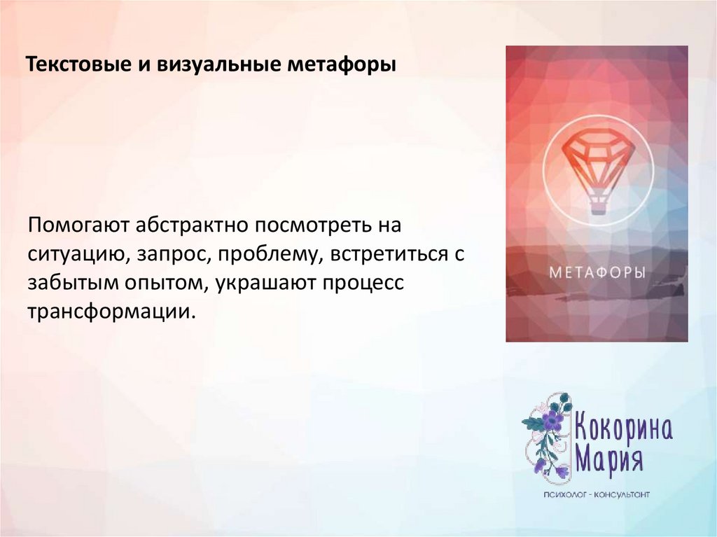 Текстовые и визуальные метафорыПомогают абстрактно посмотреть на