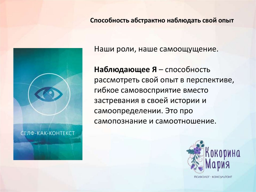Способность абстрактно наблюдать свой опытНаши роли, наше самоощущение.