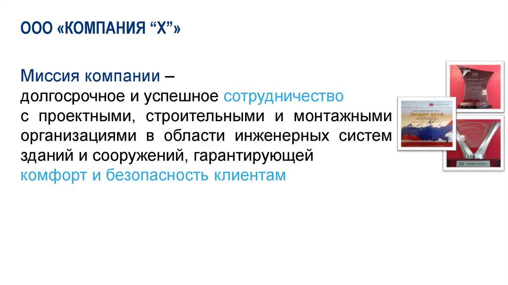 ООО «КОМПАНИЯ “X”»Миссия компании –
