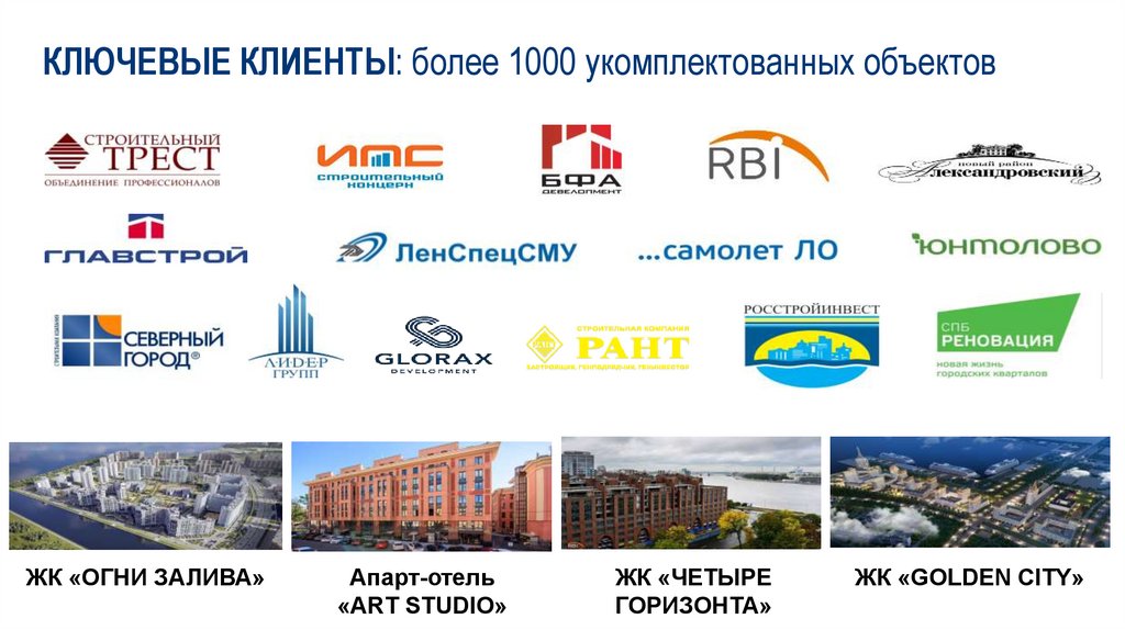 КЛЮЧЕВЫЕ КЛИЕНТЫ: более 1000 укомплектованных объектовЖК «ОГНИ ЗАЛИВА»