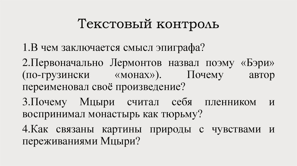 Текстовый контроль1.В чем заключается смысл эпиграфа?