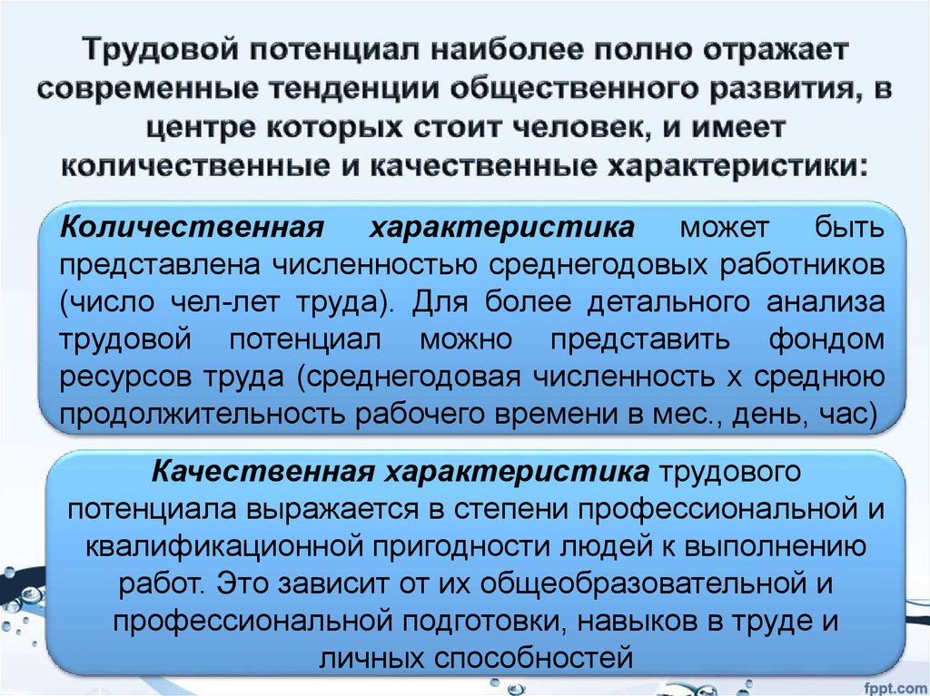 4. Трудовой потенциал наиболее полно отражает современные тенденции общественного развития, в центре которых стоит человек, и