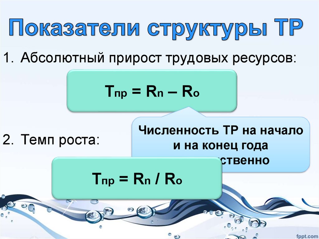 1. Абсолютный прирост трудовых ресурсов:Тпр = Rn – Ro