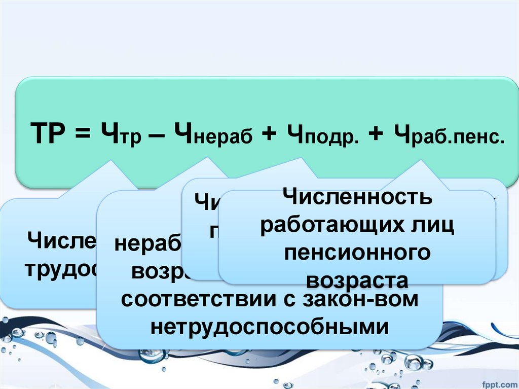 ТР = Чтр – Чнераб + Чподр. + Чраб.пенс.Численность