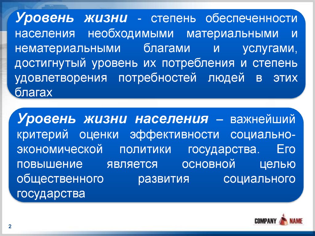 Уровень жизни населения – важнейший