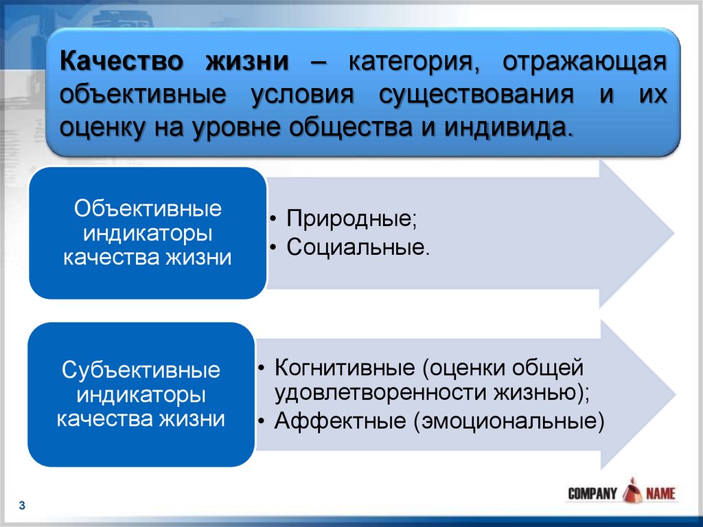 Качество жизни – категория, отражающаяобъективные условия существования и их