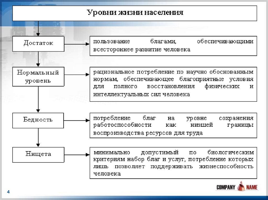 Уровень жизни - степень обеспеченностинаселения необходимыми материальными и