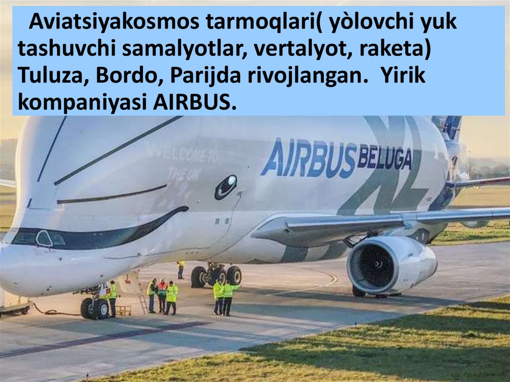 Aviatsiyakosmos tarmoqlari( yòlovchi yuktashuvchi samalyotlar, vertalyot, raketa)
