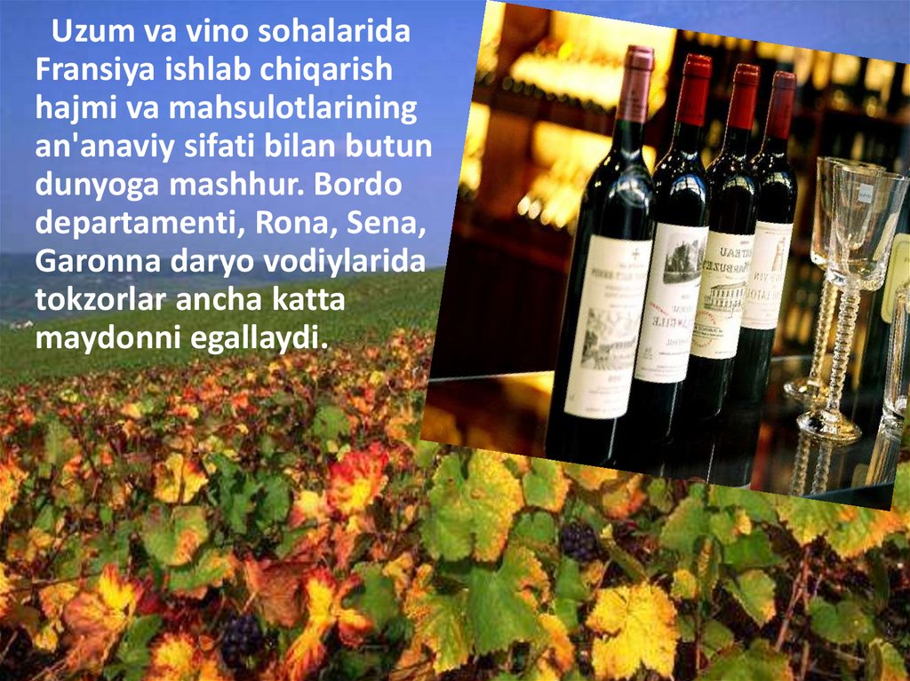 Uzum va vino sohalaridaFransiya ishlab chiqarish