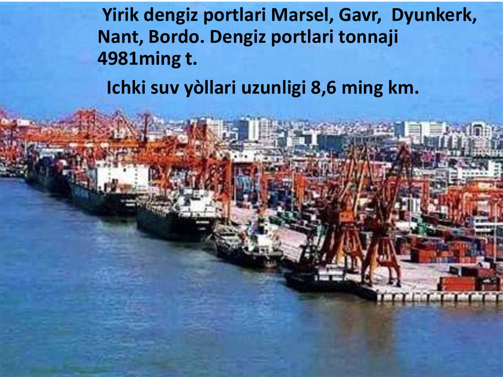 Yirik dengiz portlari Marsel, Gavr, Dyunkerk,Nant, Bordo. Dengiz portlari tonnaji