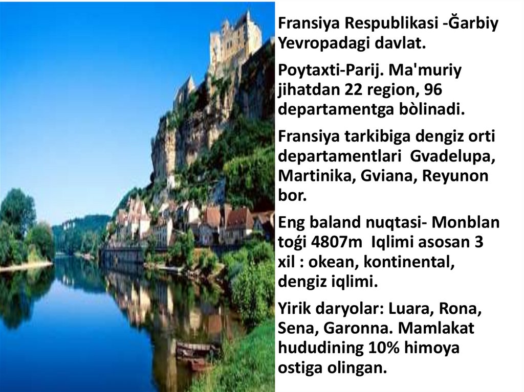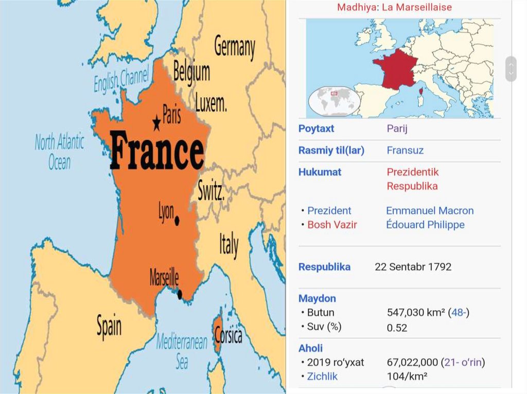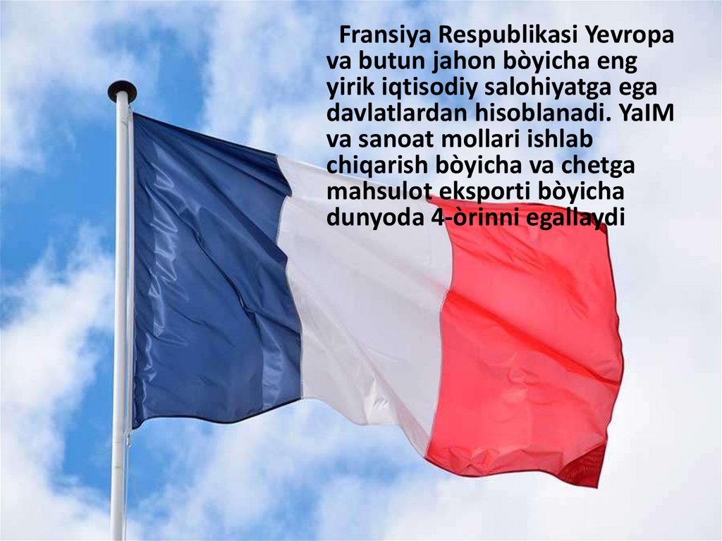 Fransiya Respublikasi -ĞarbiyYevropadagi davlat.