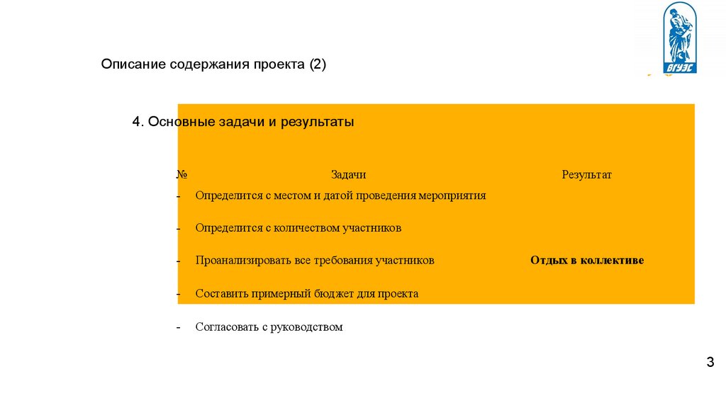 Описание содержания проекта (2)4. Основные задачи и результаты