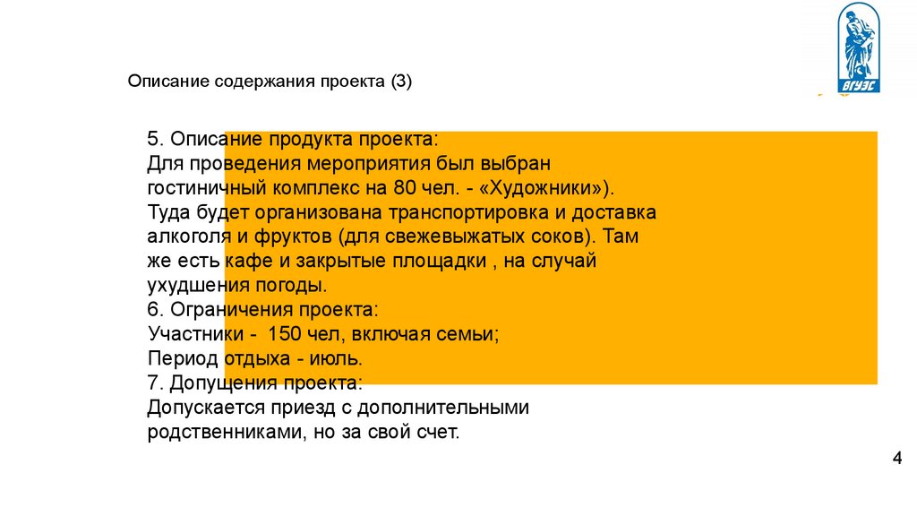 Описание содержания проекта (3)5. Описание продукта проекта: