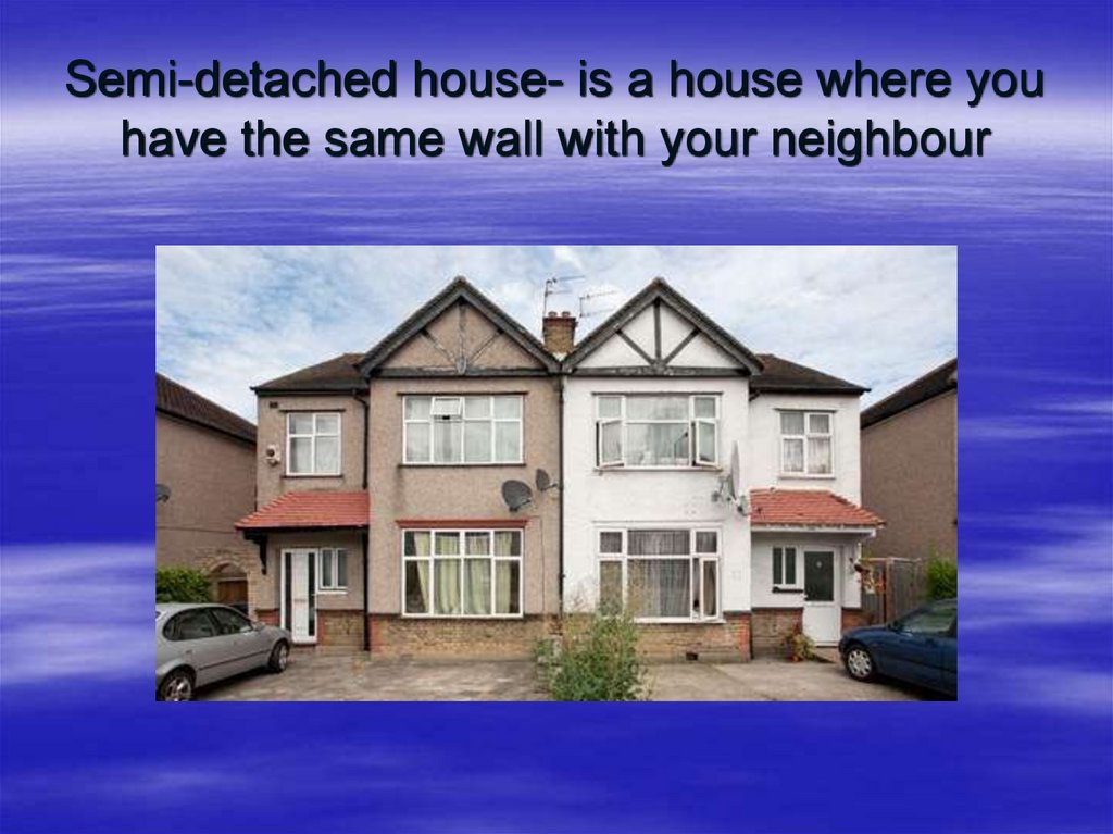 4. Semi-detached house- is a house where you have the same wall with your neighbour