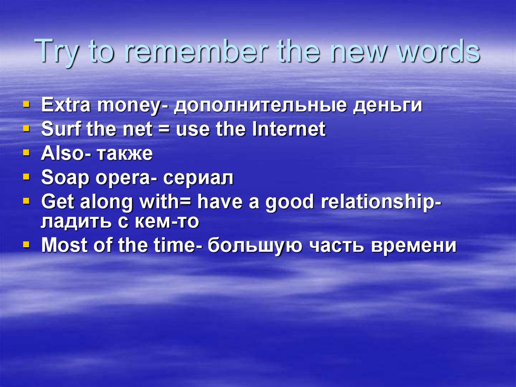 Extra money- дополнительные деньгиSurf the net = use the Internet
