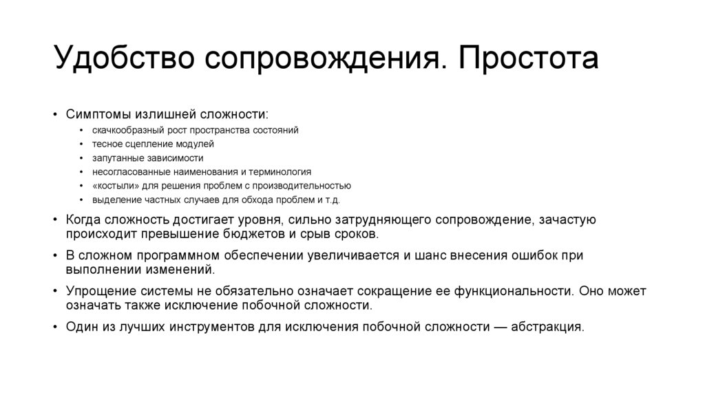 Удобство сопровождения. Простота• Симптомы излишней сложности: