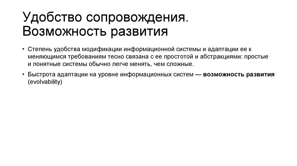 • Степень удобства модификации информационной системы и адаптации ее к