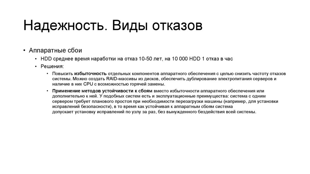 Надежность. Виды отказов• Аппаратные сбои