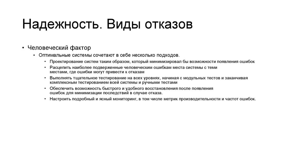 Надежность. Виды отказов• Человеческий фактор