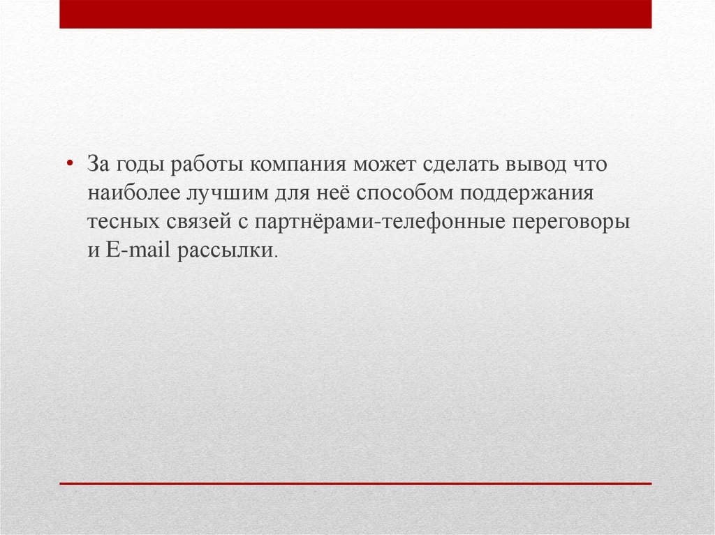 • За годы работы компания может сделать вывод чтонаиболее лучшим для неё способом поддержания