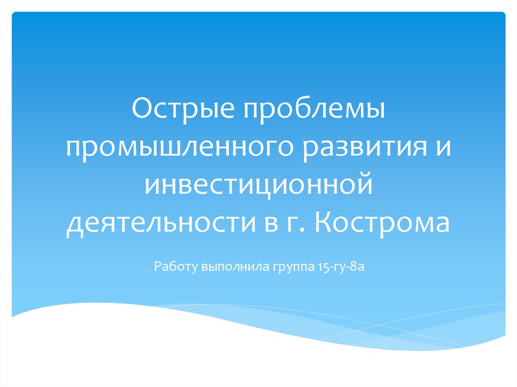 1. Острые проблемы промышленного развития и инвестиционной деятельности в г. Кострома