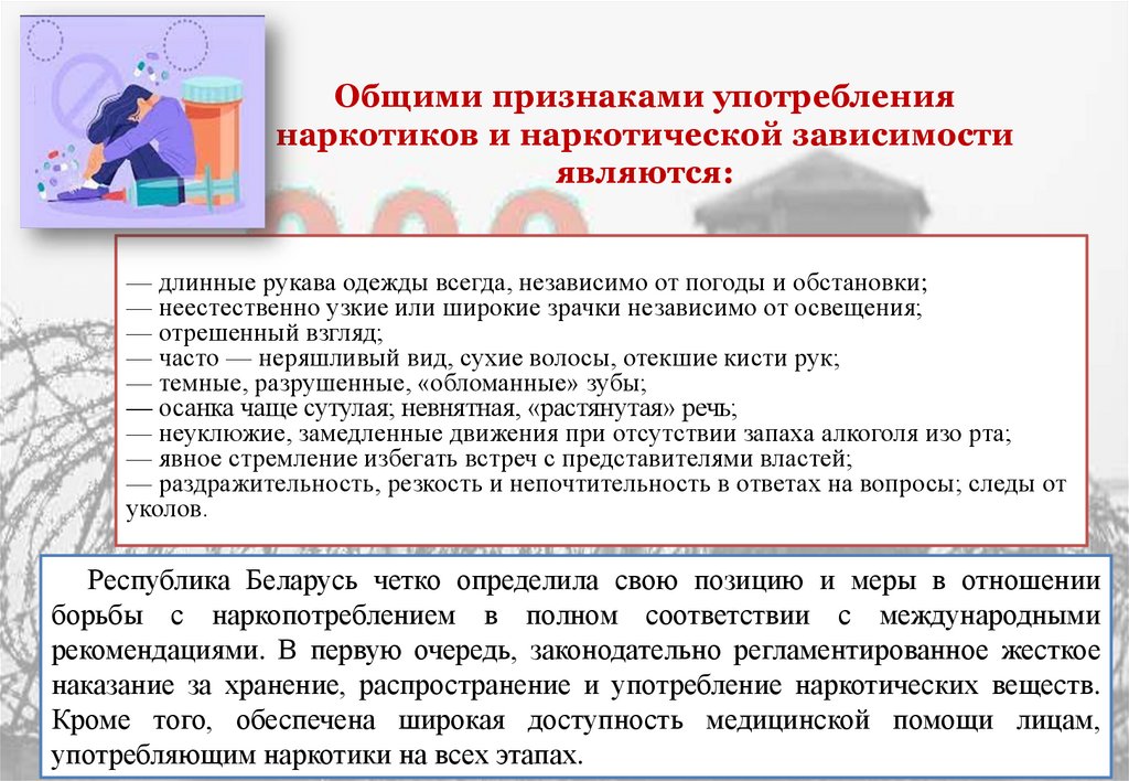 Общими признаками употреблениянаркотиков и наркотической зависимости