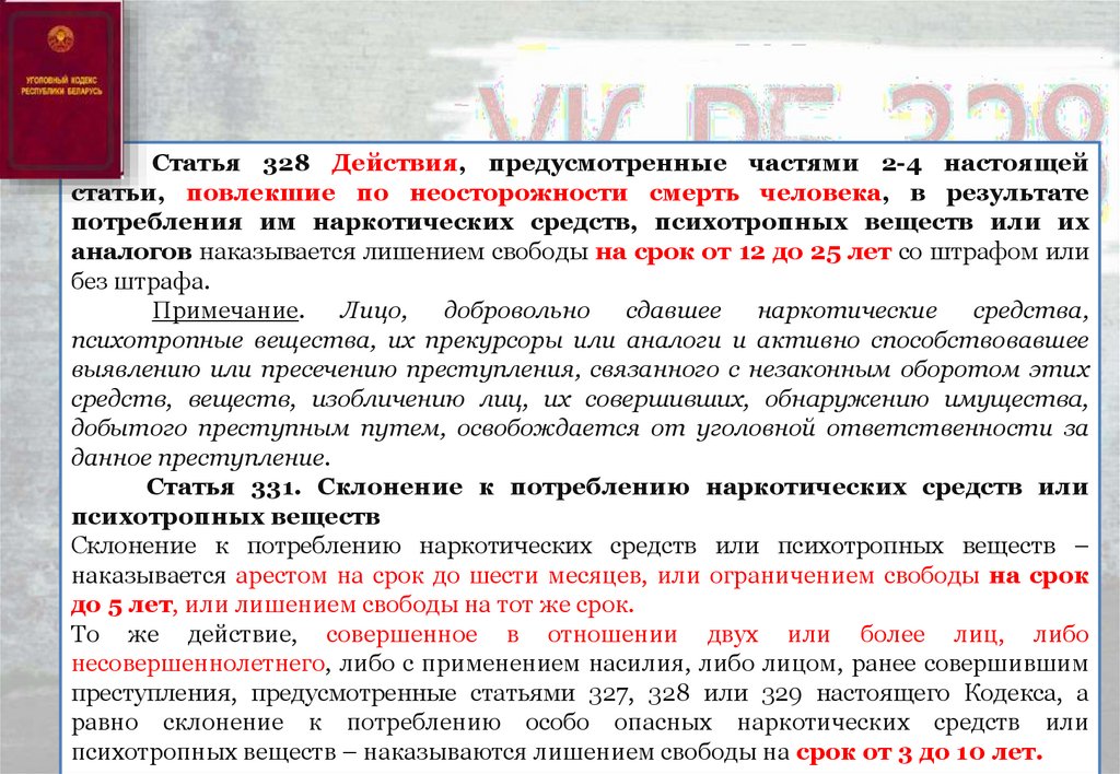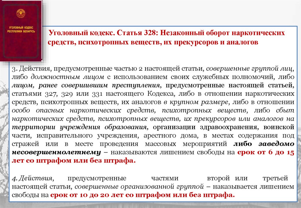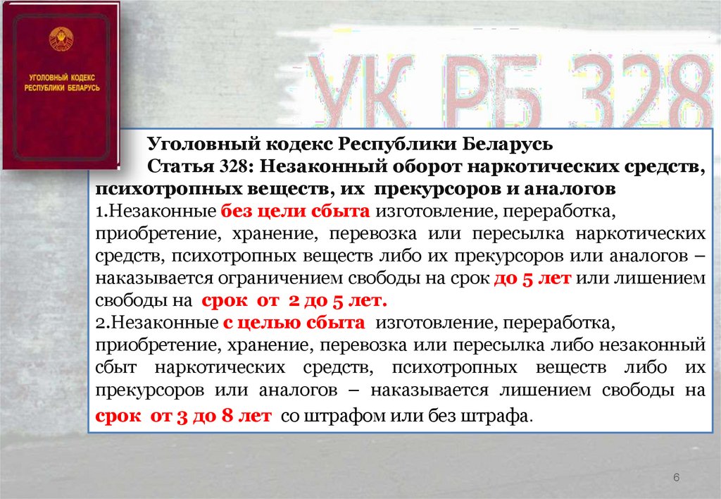 Уголовный кодекс Республики БеларусьСтатья 328: Незаконный оборот наркотических средств,