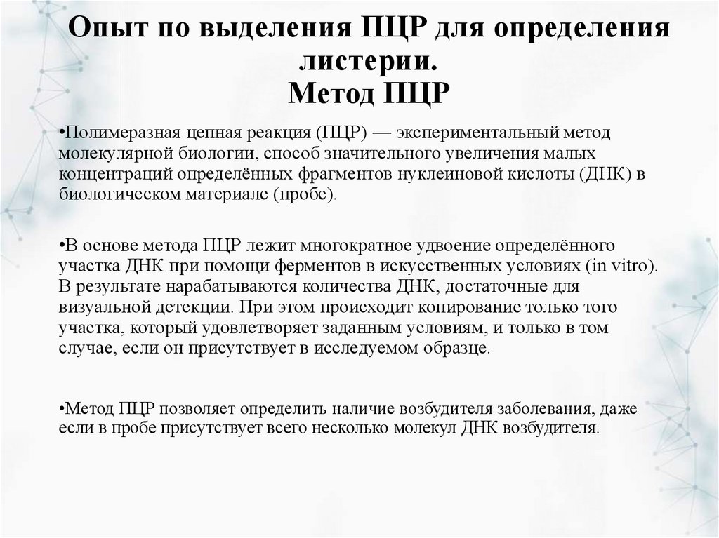 •Полимеразная цепная реакция (ПЦР) — экспериментальный метод
