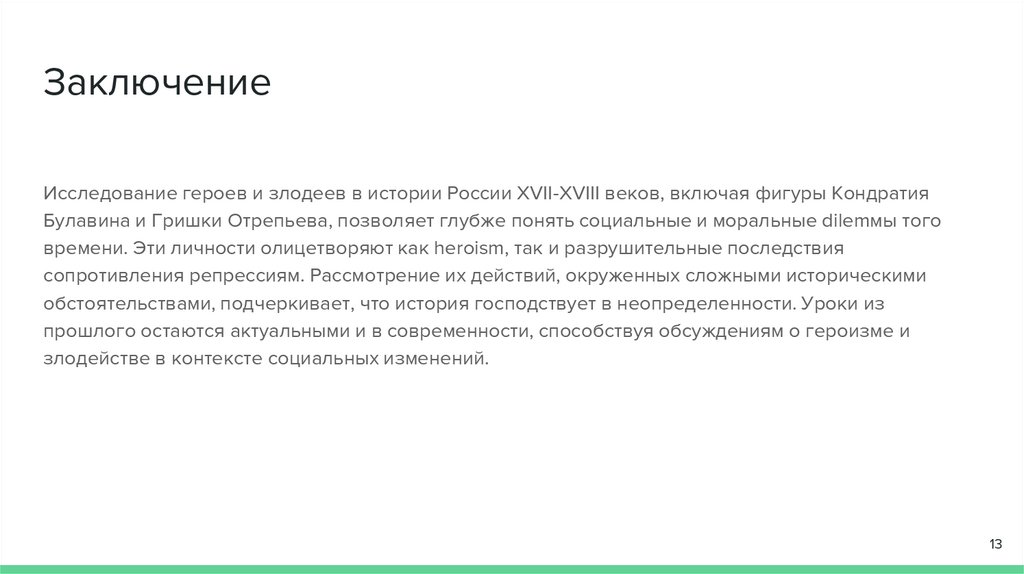 ЗаключениеИсследование героев и злодеев в истории России XVII-XVIII веков, включая фигуры Кондратия