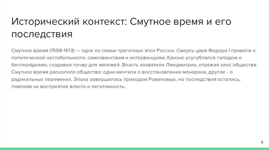 Исторический контекст: Смутное время и егопоследствия