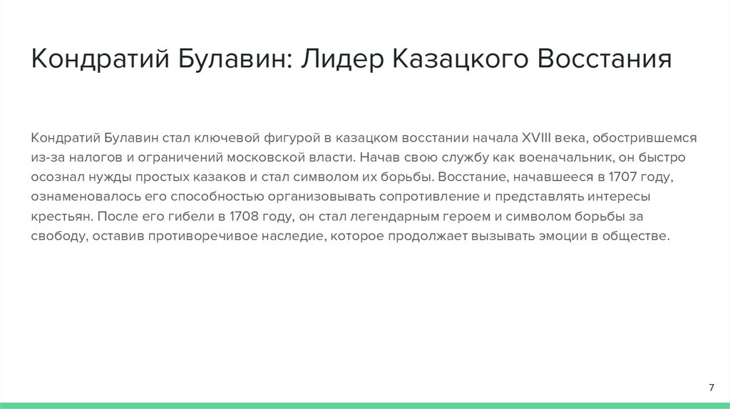 осознал нужды простых казаков и стал символом их борьбы. Восстание, начавшееся в 1707 году,