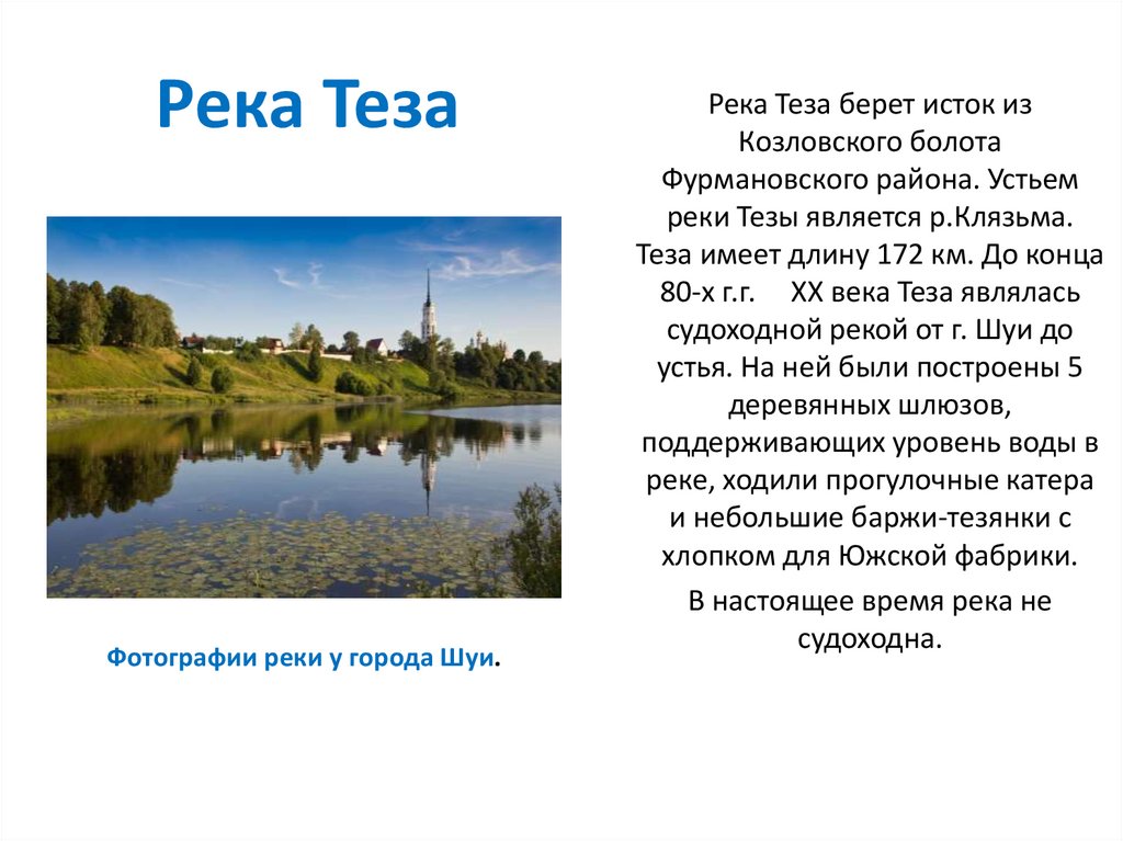 Фотографии реки у города Шуи.Река Теза берет исток из