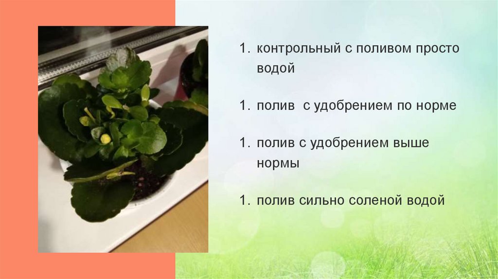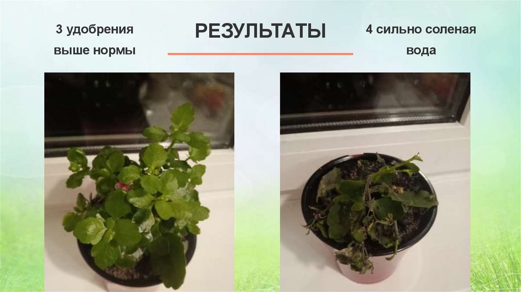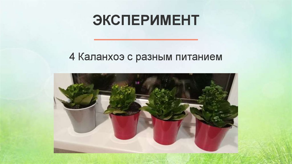 ЭКСПЕРИМЕНТ4 Каланхоэ с разным питанием