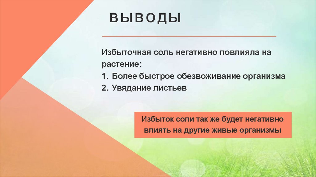 ВЫВОДЫИзбыточная соль негативно повлияла на