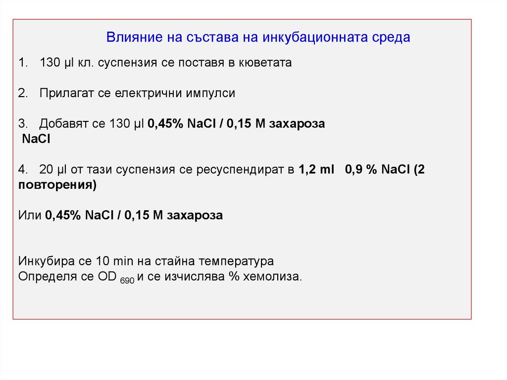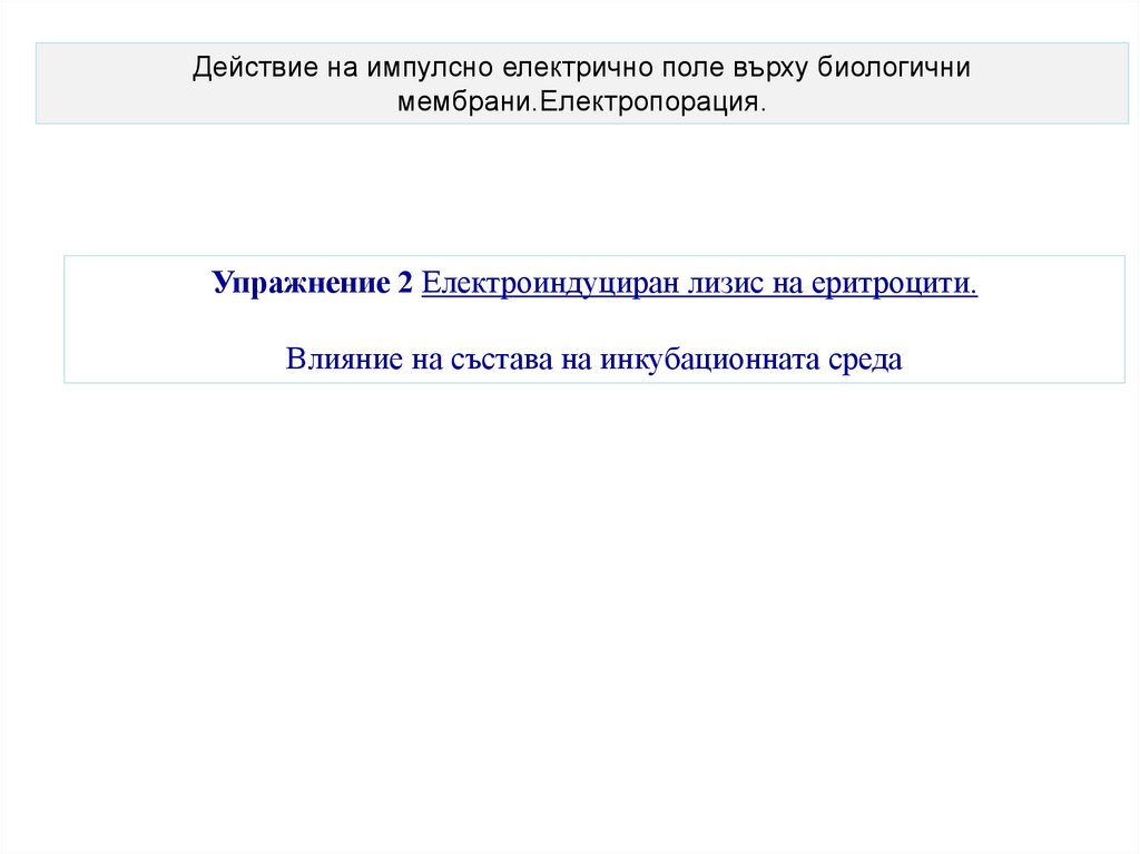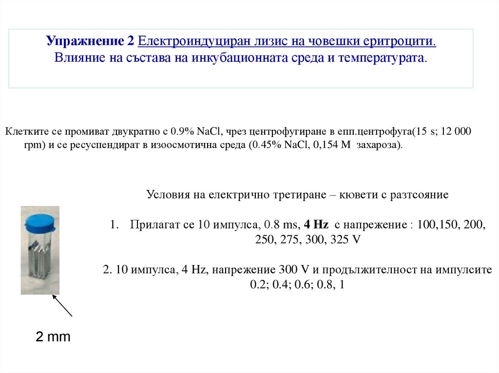 Упражнение 2 Електроиндуциран лизис на човешки еритроцити.Влияние на състава на инкубационната среда и температурата.
