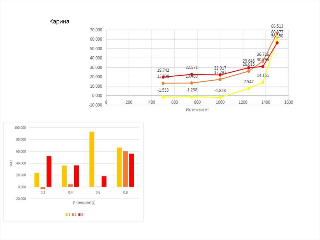 1. Прилагат се 10 импулса, 0.8 ms, 4 Hz с напрежение : 100,150, 200,