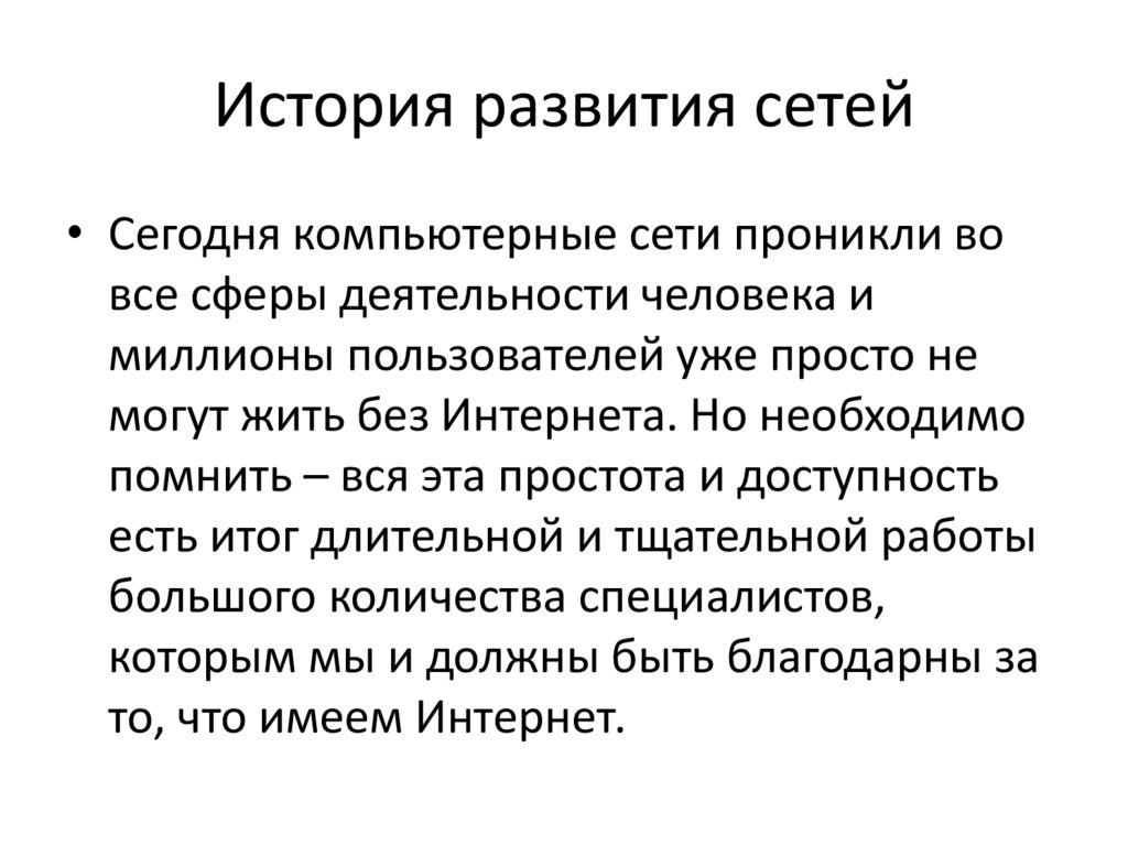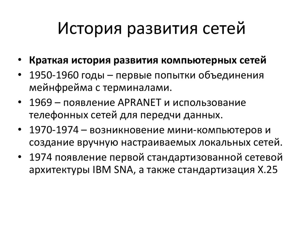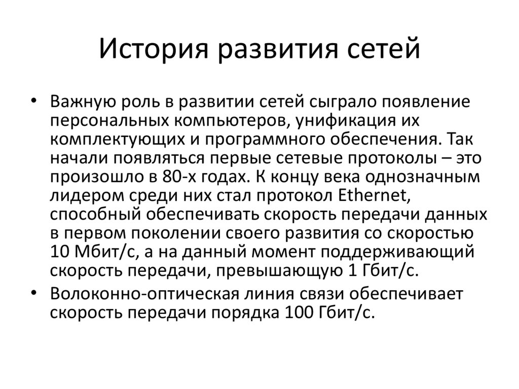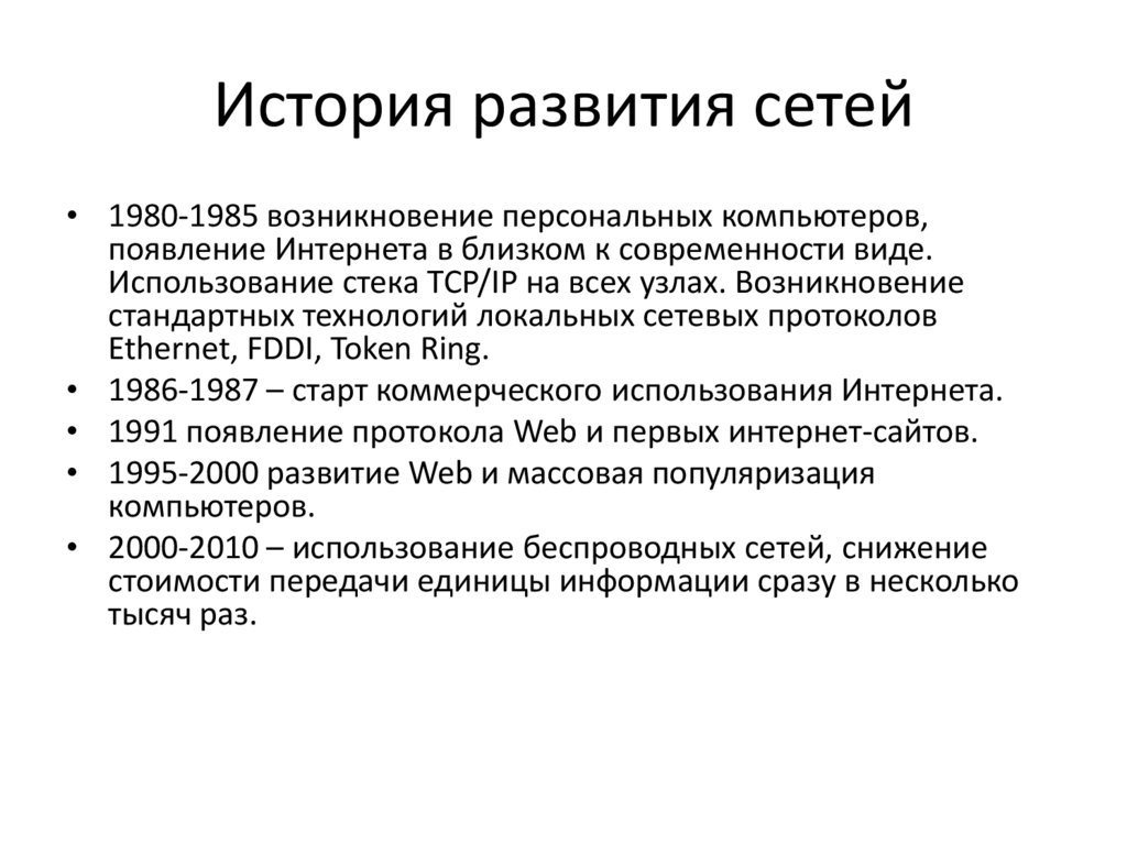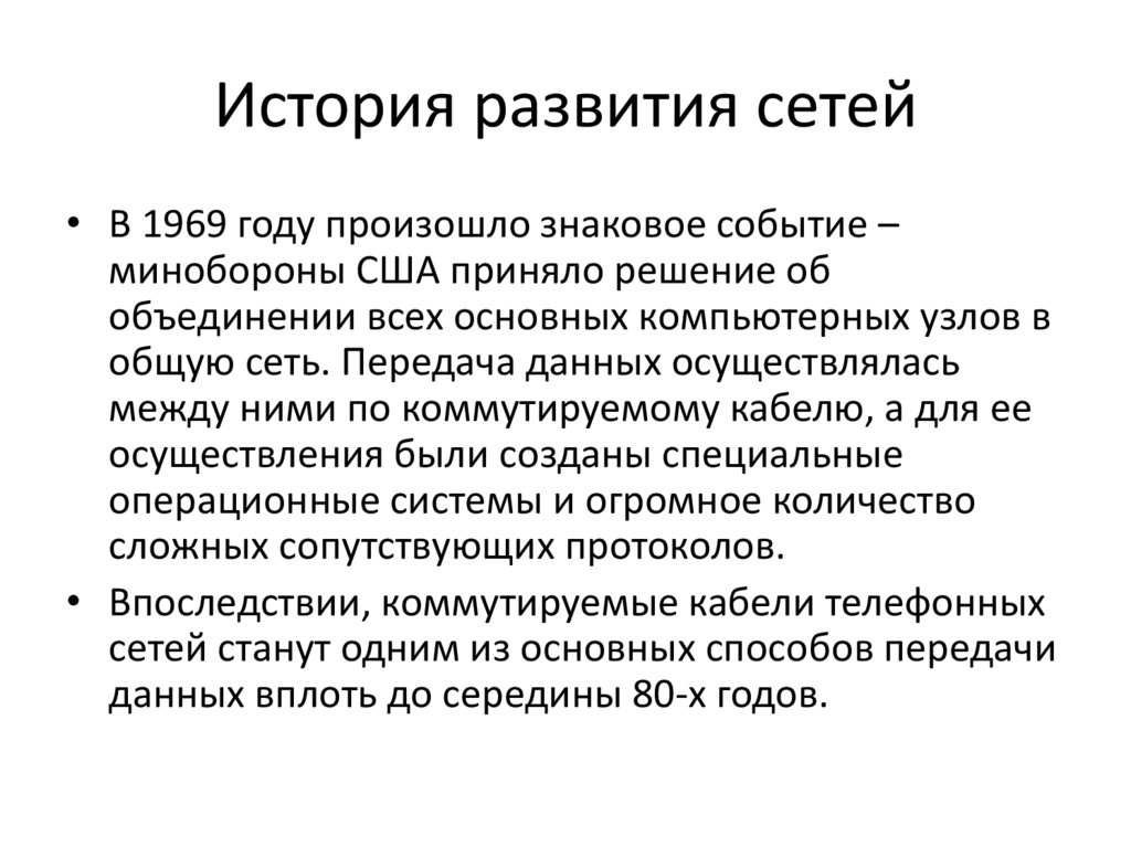История развития сетей• Важную роль в развитии сетей сыграло появление