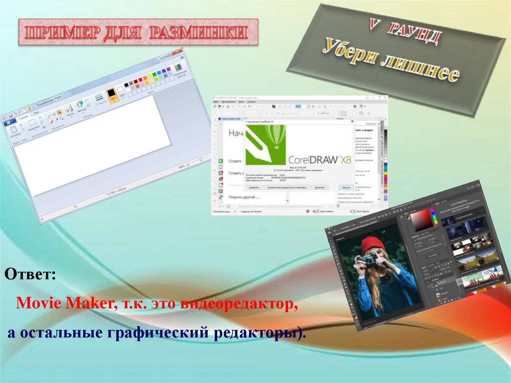 Ответ:Movie Maker, т.к. это видеоредактор,