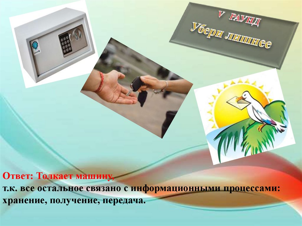 Ответ: Толкает машину,т.к. все остальное связано с информационными процессами: