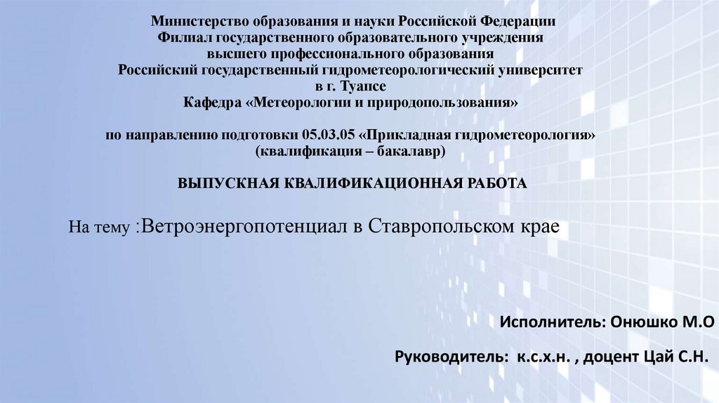 На тему :Ветроэнергопотенциал в Ставропольском крае