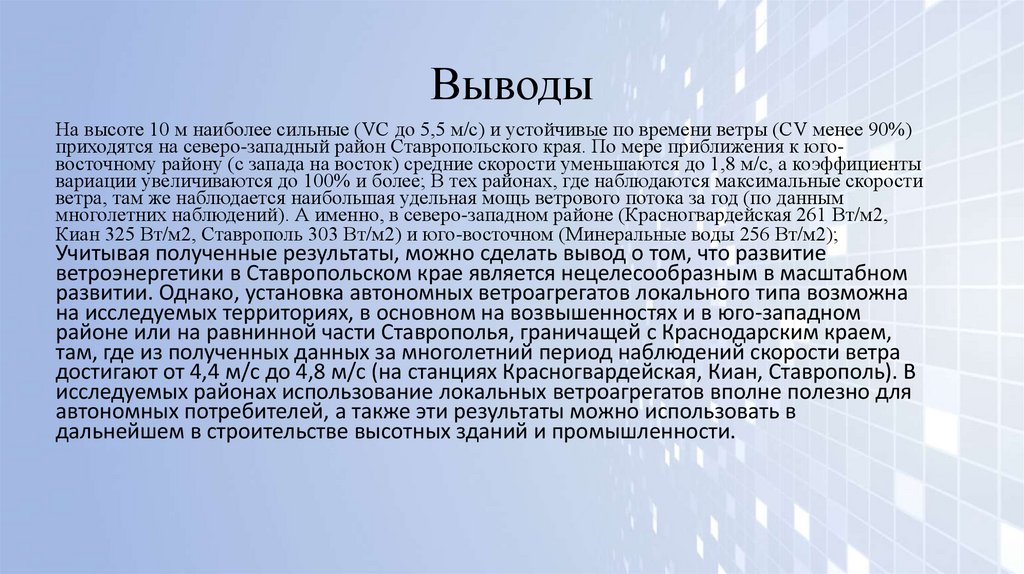 ветроэнергетики в Ставропольском крае является нецелесообразным в масштабном