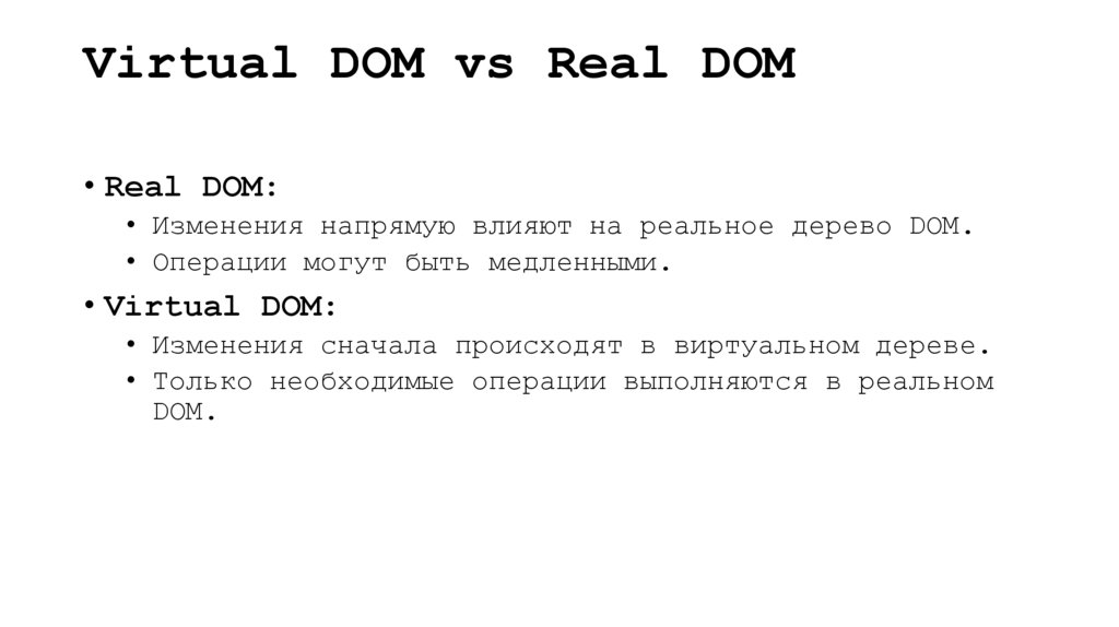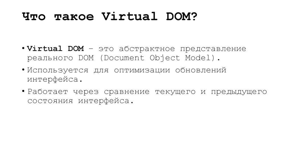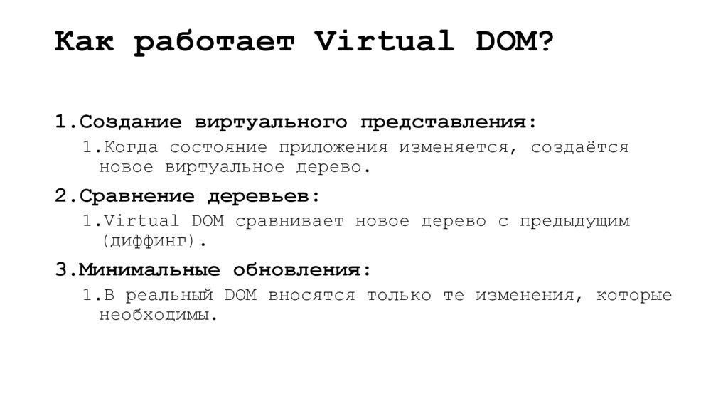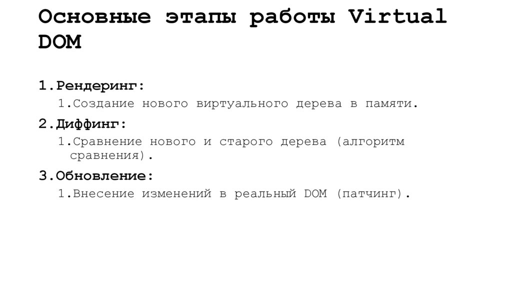 Основные принципы Virtual DOM Программирование модулей программного обеспечения